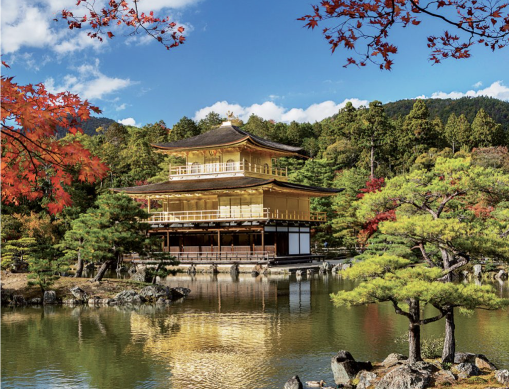 Kinkaku-ji, hay Chùa Vàng, nổi bật với ba tầng phủ vàng thật rực rỡ. Nằm bên bờ hồ yên tĩnh, chùa phản chiếu ánh sáng lấp lánh trên mặt nước, tạo nên khung cảnh quý phái và tuyệt đẹp.