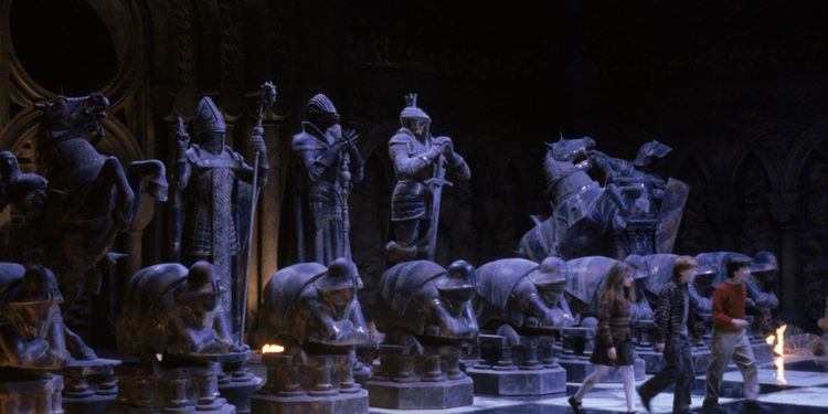 Căn phòng thứ tư là một trò chơi Cờ vua Pháp sư có kích thước thật. Để Harry chiếu hết Vua đối địch, Ron đã hy sinh bản thân cho Nữ hoàng Trắng, người đã loại anh ta khỏi bàn cờ một cách tàn bạo. Harry có thể vượt qua và lấy được viên đá nhờ Ron. Đây là cảnh mà hầu hết người hâm mộ đều nhớ, và là một trong những trường hợp đầu tiên cho thấy cả hai sẵn sàng tiến xa đến mức nào vì nhau.