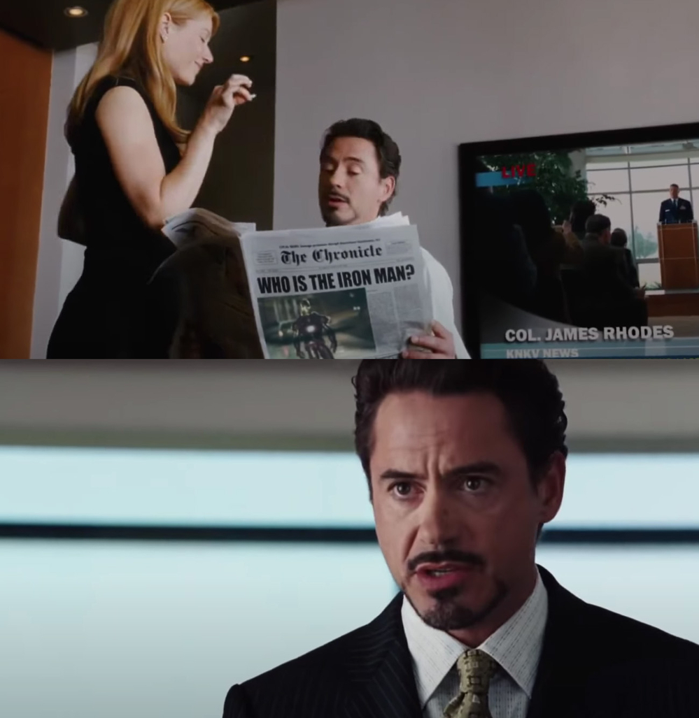 Câu thoại cuối cùng của anh trong buổi họp báo rằng: “Tôi chính là Iron Man” đã làm dư luận trầm trồ hết nấc và có thể xem là cảnh phim kinh điển của MCU. Nhớ lại trong Avengers: Endgame, Tony cũng nói câu tương tự trước khi thực hiện cú búng tay định mệnh.