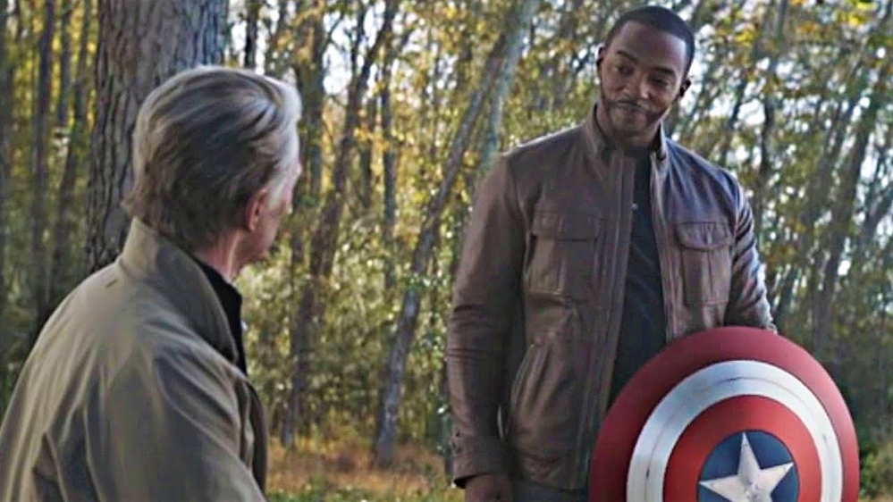 Không chỉ là sự kết thúc của Iron Man, cái kết của Endgame còn là lời tạm biệt với Captain America. Cap đã chọn ở lại quá khứ, sống hạnh phúc cùng Peggy và trở nên già cỗi ở hiện tại. Anh trao lại chiếc khiên biểu tượng cho Cap mới là Falcon.