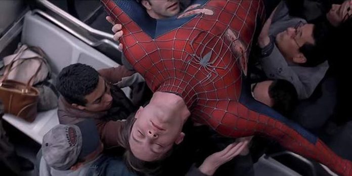 Spider-Man 2 là một trong những bộ phim siêu anh hùng mà mình yêu thích nhất. Ở cuối phim, Spider-Man của Tobey Maguire đã dồn hết sức để chặn đoàn tàu và kết quả là anh ngất xỉu vì kiệt sức. Lúc này những người trên tàu đã đỡ lấy anh và đưa vào nơi an toàn.