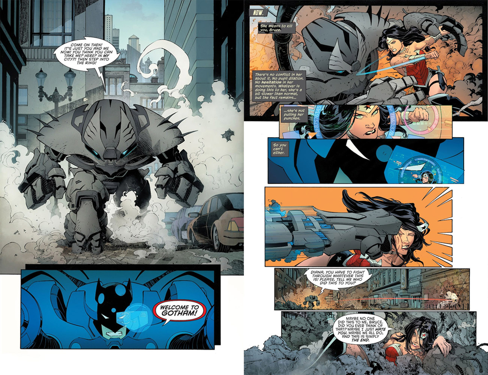 Sau khi đánh thức Người Đàn Ông Thép, Batman đã kéo hàng loạt mặt trời tới gần đó để Superman tăng cường sức mạnh. Ngay sau đó, Sup trở nên mạnh hơn bao giờ hết và đã bay một mạch về Trái Đất, đánh bại World Forge chỉ với một đòn, còn Final Bat-Suit thì không thể hiện gì khác ngoài việc chiến đấu câu giờ. Tuy nhiên, xét theo tiềm năng thì đây vẫn xứng đáng là bộ giáp mạnh nhất mà Batman từng sở hữu.
