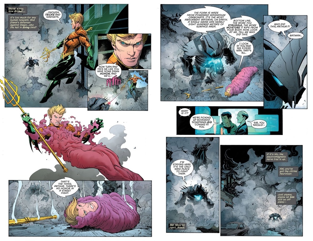 – Súng phóng MgCO3 dạng bọt (1 gram có thể bao phủ 800 mét vuông bề mặt) có khả năng hút ẩm cực mạnh (khắc chế Aquaman).