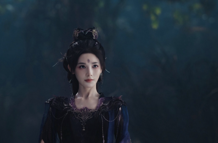 Tạo hình của Mộ Vũ Mặc không chỉ là y phục mà còn là công cụ kể chuyện. Bộ áo choàng lụa mỏng chuyển sắc bạc tím, hoa văn mạ vàng, mặt nạ Mão Thố điêu khắc tinh xảo và hoa văn nhện trên trán hợp thành một hình ảnh vừa siêu thực vừa uy nghiêm. Thiết kế trang phục lấy nét ở sự tương phản — mềm mại của voan và cứng cáp của viền bạc — giúp mỗi chuyển động của nhân vật toát lên vừa nét tiên nữ vừa sát khí lạnh lùng. Chi tiết phụ kiện như tua rua bạc hay kiểu tóc búi cao góp phần tôn khí chất giang hồ độc đáo.