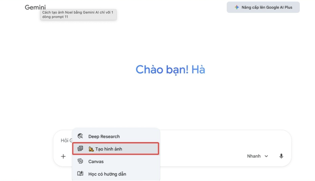 Bước 1: Mở Gemini AI và chọn công cụ tạo ảnh Nano Banana