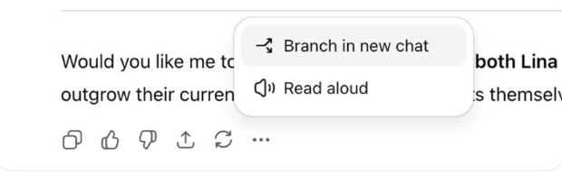 Tính năng Branch cho phép người dùng tách luồng trò chuyện ngay lập tức, giữ nguyên mọi dữ liệu và ngữ cảnh từ đầu. Nhờ đó, bạn có thể thử song song nhiều cách tiếp cận khác nhau mà không lo mất đi mạch hội thoại gốc.