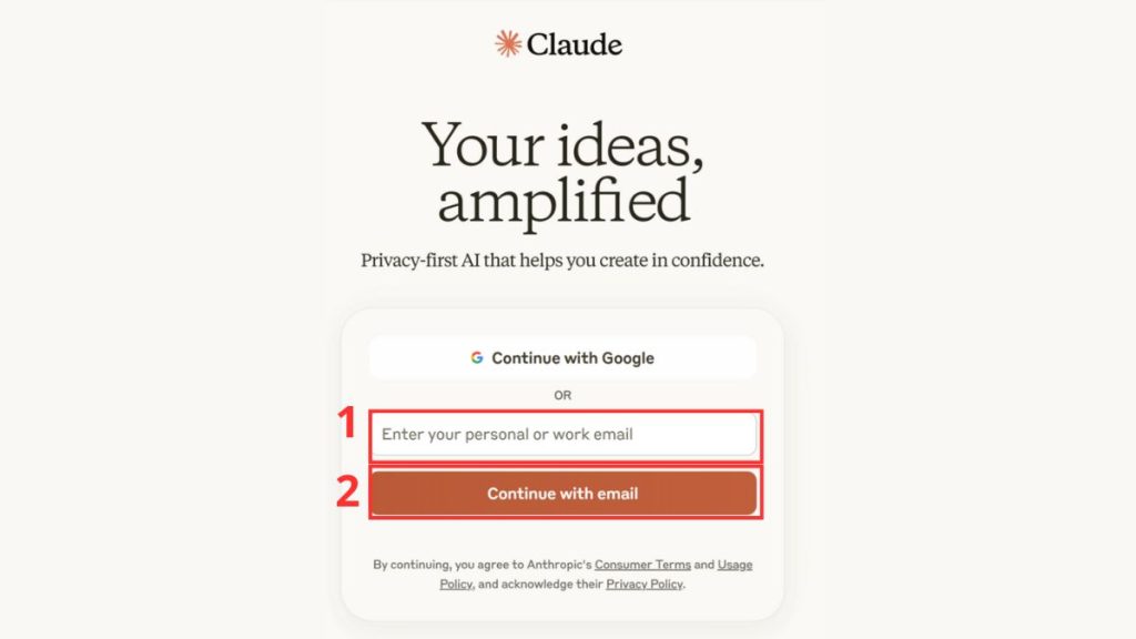 Bước 1: Truy cập trang web của Claude 3.7 và đăng nhập bằng tài khoản bạn đã tạo, chọn “Continue with email”.