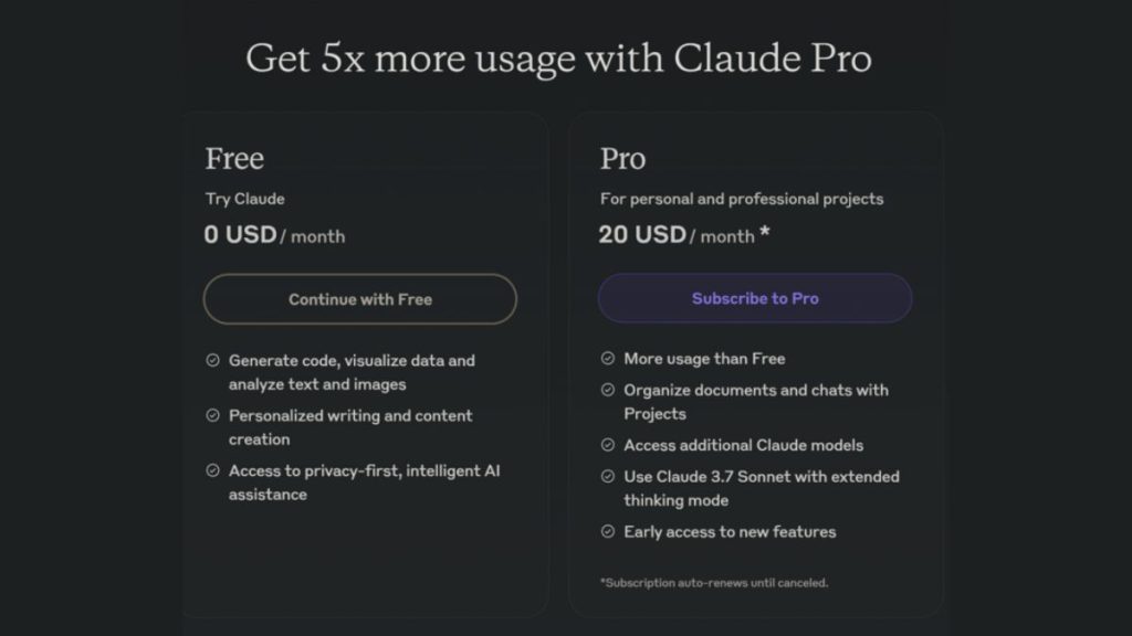 Anthropic cung cấp các tùy chọn sử dụng Claude 3.7 để đáp ứng nhu cầu đa dạng của người dùng. Với phiên bản miễn phí, người dùng có thể trải nghiệm các chức năng cơ bản như giao tiếp tự nhiên, đặt câu hỏi và xử lý văn bản ở một mức độ nhất định. Điều này cho phép người dùng làm quen và khám phá những khả năng tiềm năng của Claude 3.7.