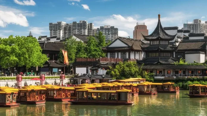 Khi đêm đến, hãy dạo thuyền trên sông Tần Hoài, ngắm phố cổ lung linh ánh đèn và thưởng thức ẩm thực đêm đặc trưng của Nam Kinh.