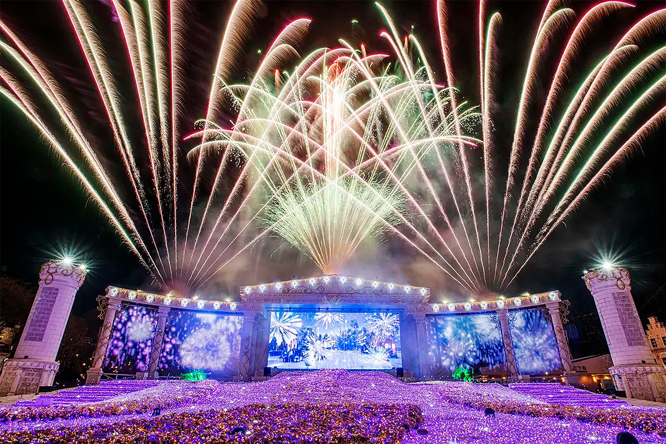 Khi đêm xuống, đừng bỏ lỡ màn diễu hành Moonlight Parade – nơi ánh sáng, âm nhạc và pháo hoa hòa quyện, mang đến cảm xúc vỡ òa trong không gian lạnh giá.