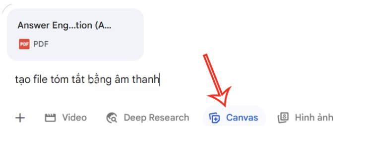 Bước 1: Truy cập tài khoản Gemini, vào chế độ Canvas và nhấn biểu tượng dấu cộng để tải tệp lên.