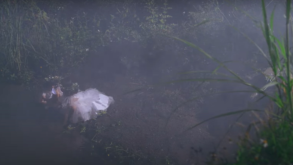 Giữa khu vườn ngập tràn sắc xanh của cây cối, Vân mặc một chiếc áo dài trắng, đội vòng hoa nhưng tóc cô đã rụng hết vì căn bệnh ung thư quái ác. Tại nơi đó, có bố Vân, Hoàng – chồng cô và hai cô con gái nhỏ Nguyệt và Nga đứng đợi sẵn. Mỗi người đứng ở một nơi, cách nhau một khoảng vừa đủ.