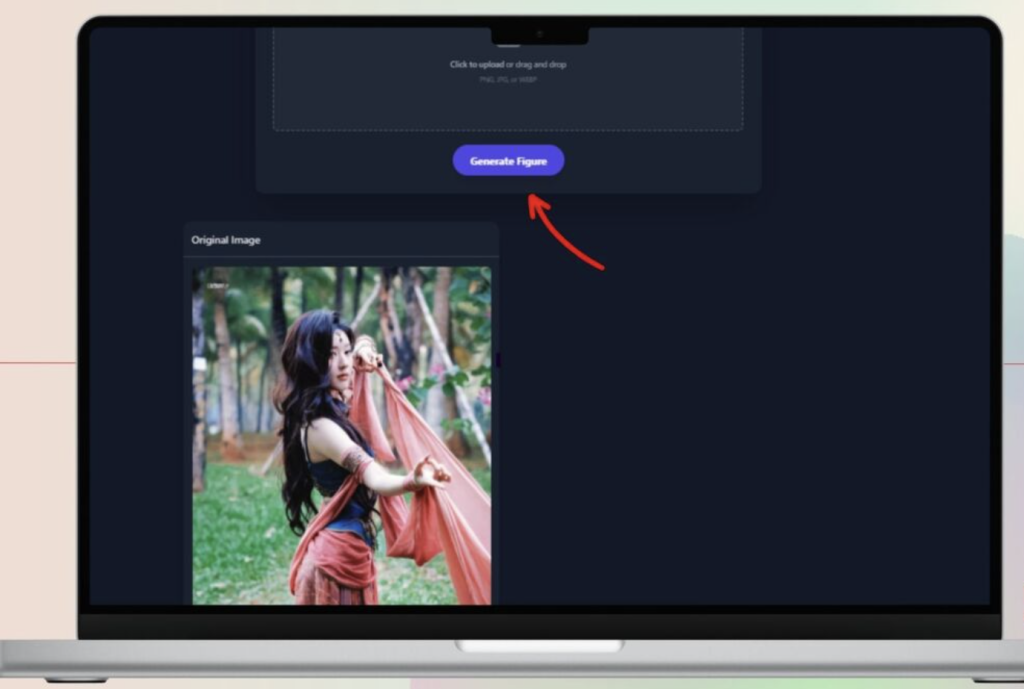 Nhấn “click to upload or drag and drop” để tải lên ảnh chân dung rõ nét, với khuôn mặt chiếu sáng tốt và không bị che khuất. Ảnh chất lượng cao sẽ giúp mô hình Figure 3D đẹp và chân thực hơn.