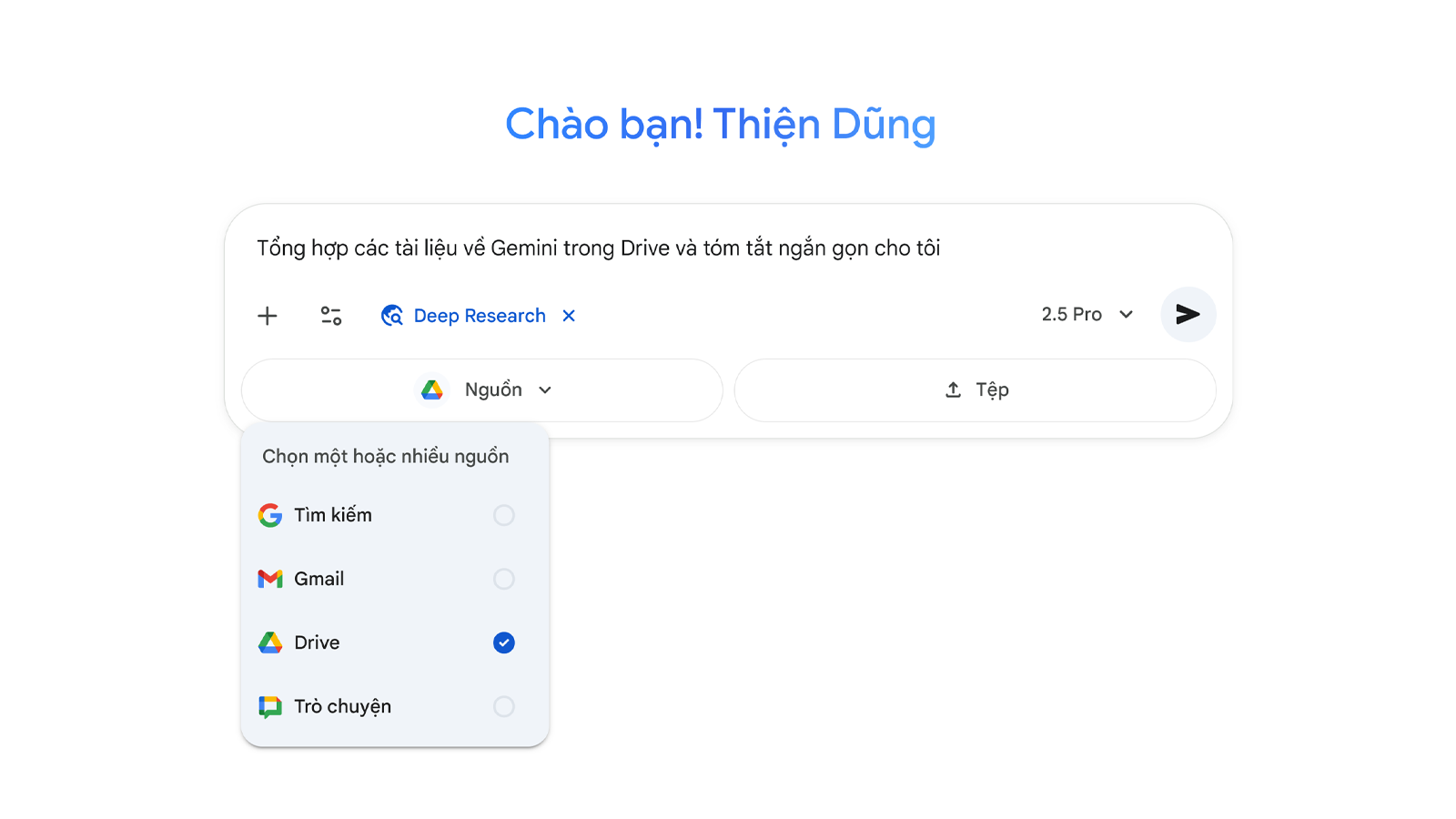 Khi kết hợp dữ liệu nội bộ với thông tin từ Google Search, Deep Research có thể cung cấp kết quả sát thực tế hơn, đặc biệt trong các tình huống cần phân tích chuyên sâu như xây dựng chiến lược kinh doanh, đánh giá đối thủ hay tổng hợp báo cáo dự án.