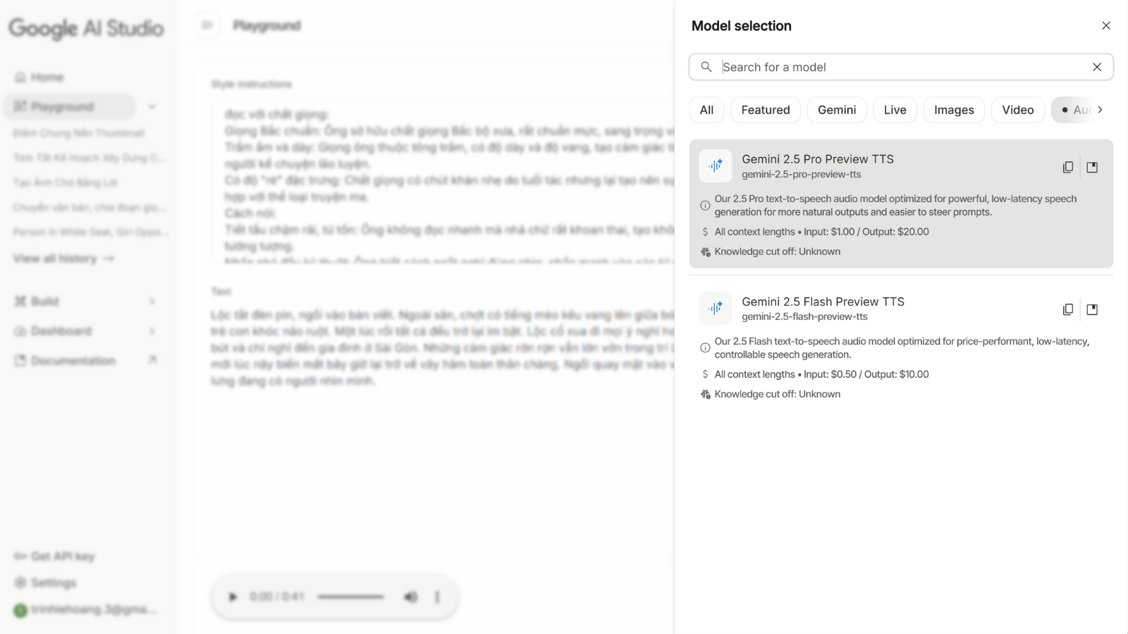 Google vừa công bố loạt cập nhật quan trọng cho công nghệ chuyển đổi văn bản thành giọng nói (Text-to-Speech – TTS), đi kèm hai phiên bản mới là Gemini 2.5 FlashGemini 2.5 Pro. Hiện các công cụ này đã xuất hiện trên Google AI Studio dưới dạng bản xem trước (preview), cho phép mọi người dùng trải nghiệm sớm và ứng dụng vào các sản phẩm cần chất lượng âm thanh cao.