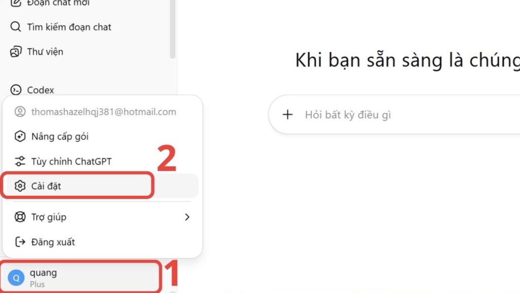 - Truy cập vào trang web chatgpt.com và đăng nhập vào tài khoản.