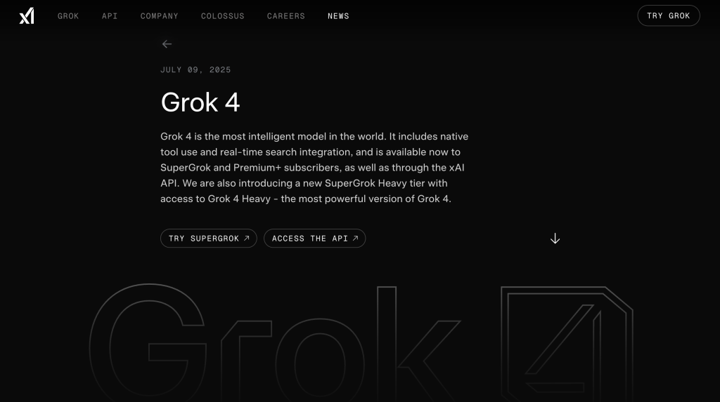 Grok 4 được huấn luyện trên siêu máy tính Colossus của xAI, với trọng tâm là khả năng suy luận logic nâng cao và tạo văn bản chuyên sâu. Theo Elon Musk, đây không chỉ hiểu biết ở cấp độ học thuật mà còn vượt qua cả trình độ tiến sĩ trong nhiều lĩnh vực.
