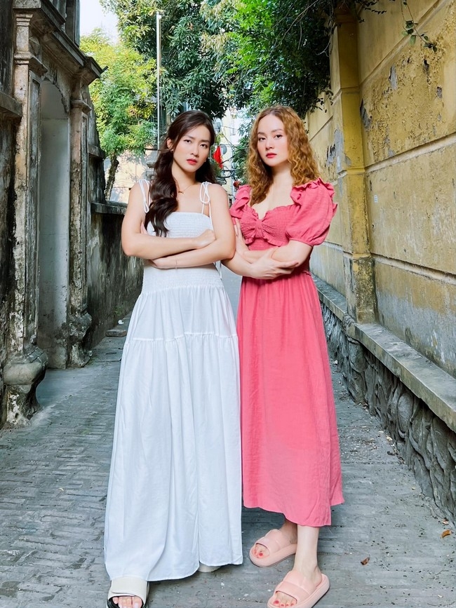 Tuy có khởi đầu có phần hơi “drama” nhưng sau tất cả, tôi thấy đôi chị em dâu Hà (Lan Phương) và Trâm Anh (Khả Ngân) đã trở nên vô cùng thân thiết. Bên cạnh những khoảnh khắc bảo vệ chị dâu cả – Phương (NSƯT Kiều Anh) đầy hài hước thì sau ống kính, hai nữ diễn viên cũng liên tục tương tác, tạo nên những bức ảnh đầy vui nhộn. Đôi chị em dâu dám chơi, dám chịu nhất của năm là đây chứ còn ai nữa.