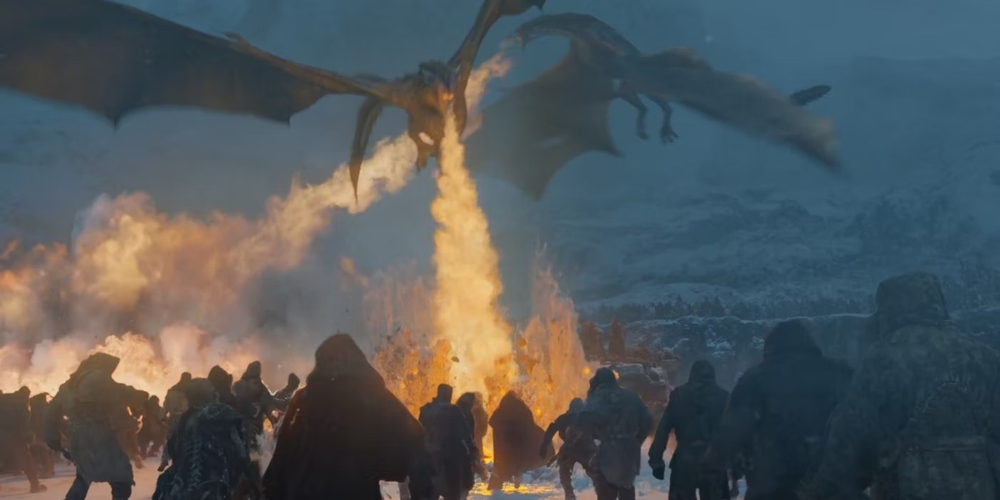 Bắp sẽ tua nhanh đến phần cuối của Game of Thrones mùa 1, Daenerys bước vào giàn thiêu của Khal Drogo và xuất hiện một cách thần kỳ cùng với 3 con rồng – Rhaegal, Viserion và Drogon, biểu thị sự tái sinh của những con rồng trong một kỷ nguyên mới. Nhưng chỉ trong phần cuối Game of Thrones mùa 5, Daenerys mới trở thành kỵ sĩ rồng, khi cô thoát khỏi Sons of the Harpy trên lưng Drogon.
