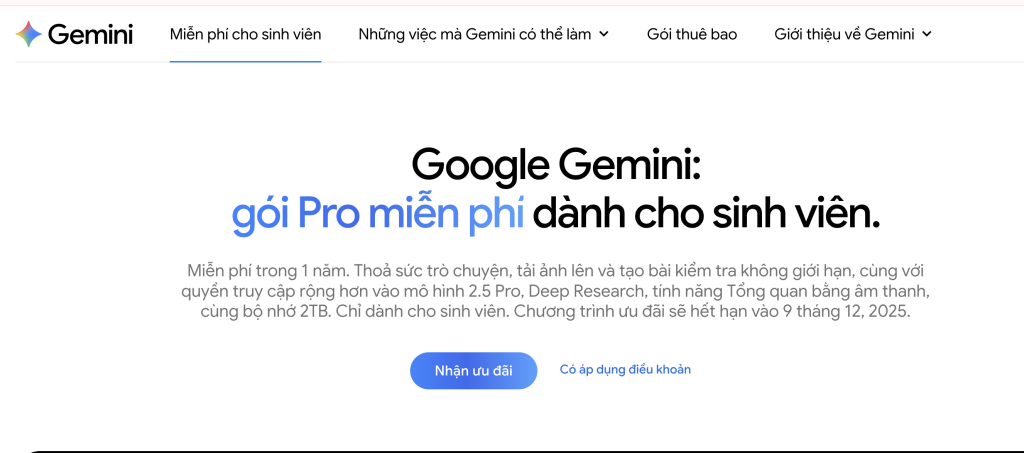 Hãy nhanh tay truy cập Gemini for Students và hoàn tất đăng ký trước 9/12/2025 để tận dụng trọn vẹn ưu đãi từ Google.