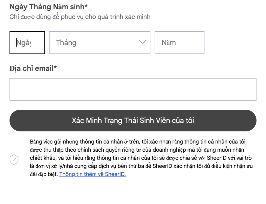 Bước 2: Xác minh tư cách sinh viên qua SheerID