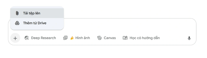 - Tại giao diện khung chat, bạn nhấn biểu tượng “+”, chọn “Tải tệp lên”, sau đó chọn bức ảnh chân dung chụp thẳng mặt của bạn để giúp Gemini có thể tạo ra bức ảnh ưng ý.