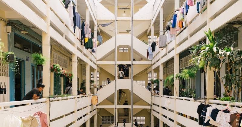 Chung cư An Bình (quận 5, TP.HCM) với lối kiến trúc độc đáo, mang màu sắc cổ kính đã lọt vào “mắt xanh” của đạo diễn Trấn Thành và đạo diễn hình ảnh Diệp Thế Vinh. Để có được những thước phim toàn cảnh tại chung cư, ê-kíp làm phim Mai phải lắp đặt cần cẩu dài, vận chuyển máy quay bằng cầu thang bộ lên đến tầng cao, căng tấm bạt bao phủ toàn bộ khu vực sân sinh hoạt chung nhằm đảm bảo điều kiện ánh sáng tốt nhất.