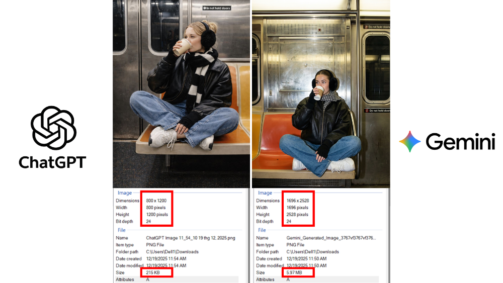 Ngược lại, GPT Image 1.5 thường cho ra ảnh có độ phân giải thấp hơn, phổ biến trong khoảng 800px đến 1200px và dung lượng chỉ vài trăm KB. Điều này khiến công cụ phù hợp hơn với mục đích minh họa nhanh, đăng mạng xã hội hoặc sử dụng nội bộ.