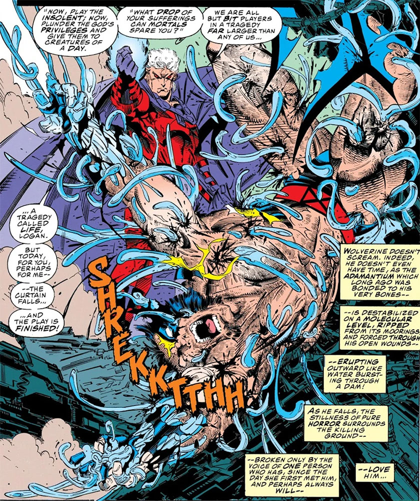 Khi Adamantium được đưa vào cơ thể Logan, đáng ra thì anh đã không thể sống nổi. Tuy nhiên, năng lực dị nhân của anh đã tạo nên phản ứng và khiến khối hợp kim đó tương thích với cơ thể sống, không ức chế quá trình sinh học của xương và không gây ra phản ứng đào thải. Tuy nhiên, Adamantium vẫn gây độc và một khi năng lực hồi phục của Logan yếu dần, chất độc đó sẽ hại anh.