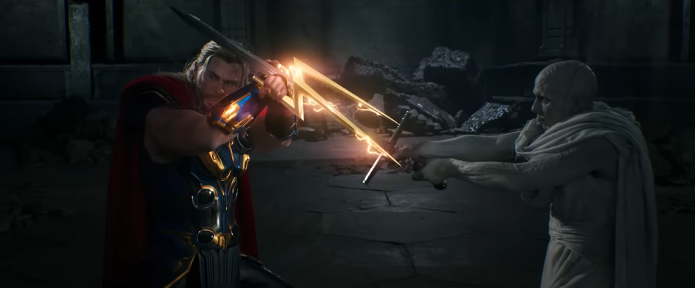 Trong Thor: Love and Thunder, Necrosword là thanh kiếm huyền thoại được lưu truyền qua vô số người trong lịch sử, có năng lực kiểm soát bóng tối, ban cho người dùng sức mạnh vĩ đại để tiêu diệt những vị thần. Tuy nhiên sau cùng thì thanh kiếm đã bị phá hủy bởi Mjolnir, rồi biến mất mà không có dấu hiệu quay trở lại. Nói tóm lại, nó quá phèn so với phiên bản gốc trong truyện tranh đấy.