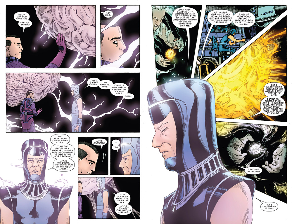 Đây có thể nói là một trong những sự thay đổi gây khó chịu nhất. Việc công bố Ego như một Celestial đã khiến cho cái giá trị của chủng tộc thực thể này bị giảm sút, và quả thật thì đã có quá nhiều chi tiết lấn cấn, đặc biệt là kể từ khi bộ phim Eternals ra mắt. Việc Star-Lord là bán Celestial thực ra cũng khá là… 3 chấm. Thôi nào, anh là bán thần nhưng không thể làm được gì hay ho ngoài việc làm cục pin hoặc chỉ có sức mạnh khi khai thác năng lượng từ cha anh ư?