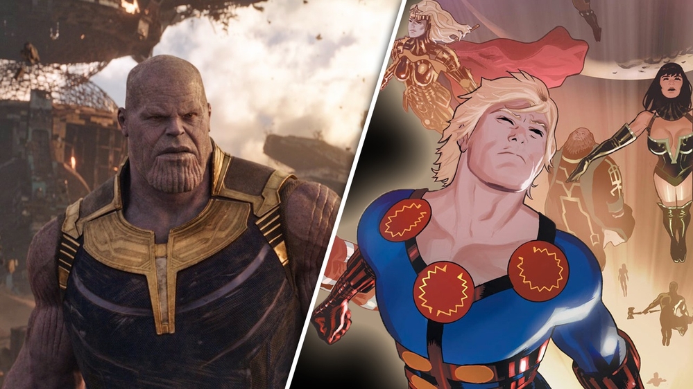 Tuy nhiên, khi lên phim thì chỉ còn chi tiết Thanos sống tại Titan (mặt trăng của sao Thổ) là còn được giữ nguyên, còn lại thì đều bị xóa sạch. Mình không biết có phải vì Marvel Studios đã dự tính thay đổi Eternals từ một chủng tộc người thành dạng sống tổng hợp từ trước nên đã làm vậy không, nhưng quả thật thì ở thời đầu, nhiều fan của Thanos đã tỏ thái độ khó chịu ít nhiều. Không chỉ vậy, việc phát triển Eros đi cùng Eternals đã khiến anh ta từ em trai ruột của Thanos lại trở thành em nuôi.