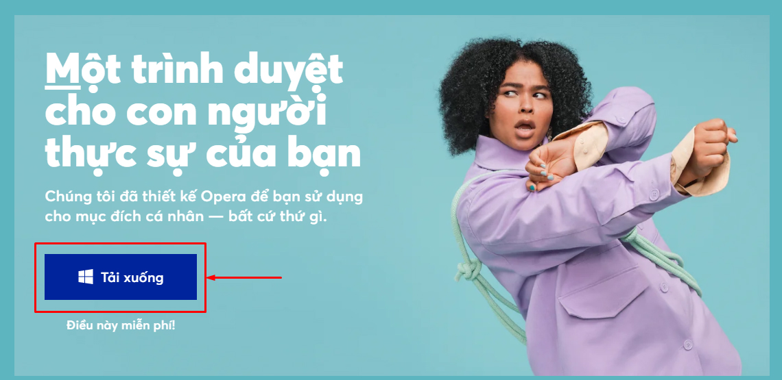 Bước 1: Truy cập vào trang chủ của Opera. Nhấn vào Tải xuống.