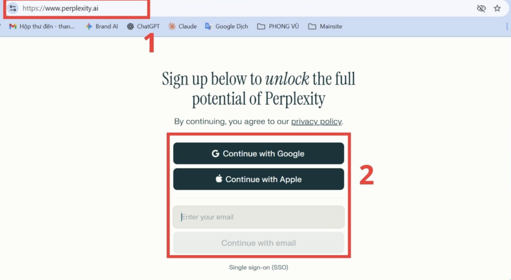 Bước 1: Truy cập và đăng nhập Perplexity AI
