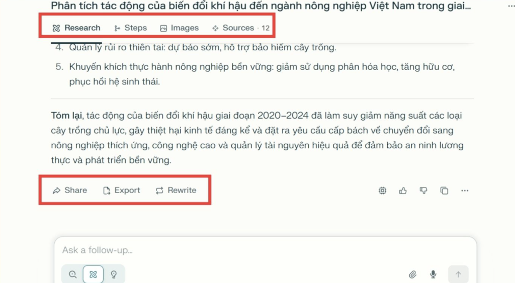 Một mẹo nhỏ là hãy sử dụng từ khóa chính xác, xác định khung thời gian, khu vực địa lý và yêu cầu cụ thể để Perplexity Deep Research tạo ra báo cáo chất lượng nhất.