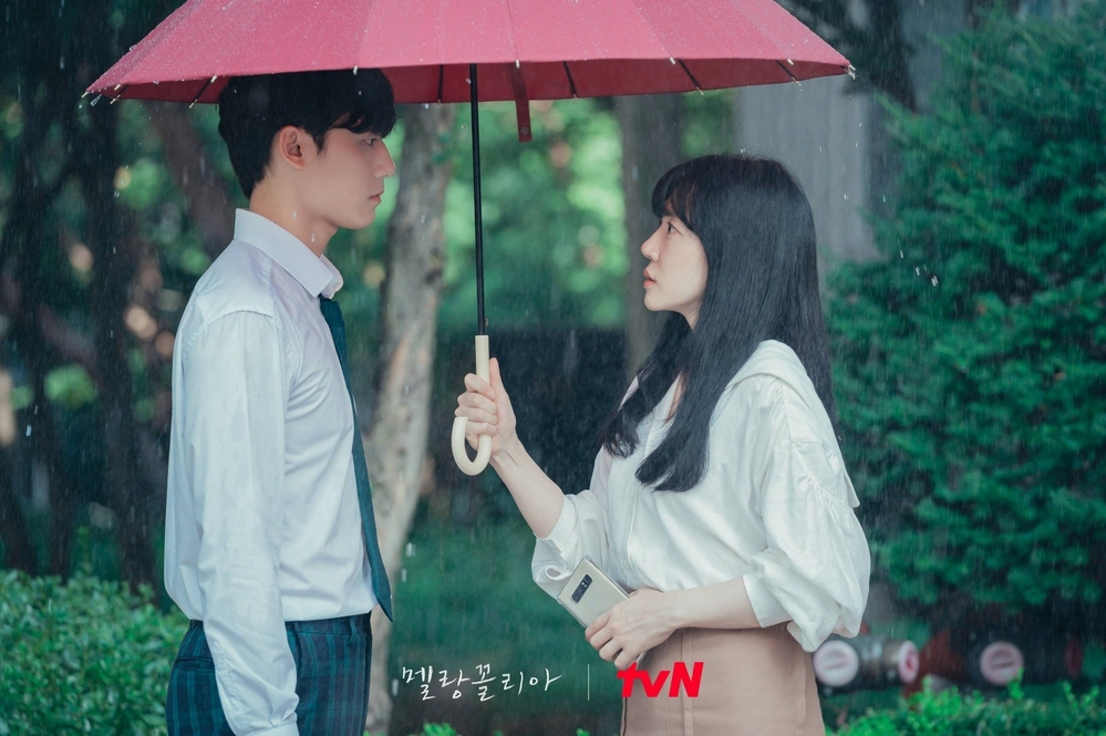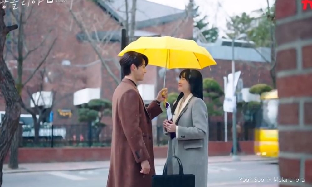 Cặp đôi Im Soo Jung và Lee Do Hyun của Melancholia cũng rất có duyên với cảnh mưa rơi và chiếc ô. Khi cả hai còn ở trường học hay sau này khi đã gặp nhau ngoài đời thì họ cũng được cơn mưa dẫn lối đến gặp nhau, và cũng là chiếc ô kéo họ xích lại gần nhau hơn. Cũng nhờ cơn mưa khiến thời gian như ngưng đọng lại mà họ nhận ra tình cảm dành cho nhau đấy, thật cảm ơn cơn mưa quá.