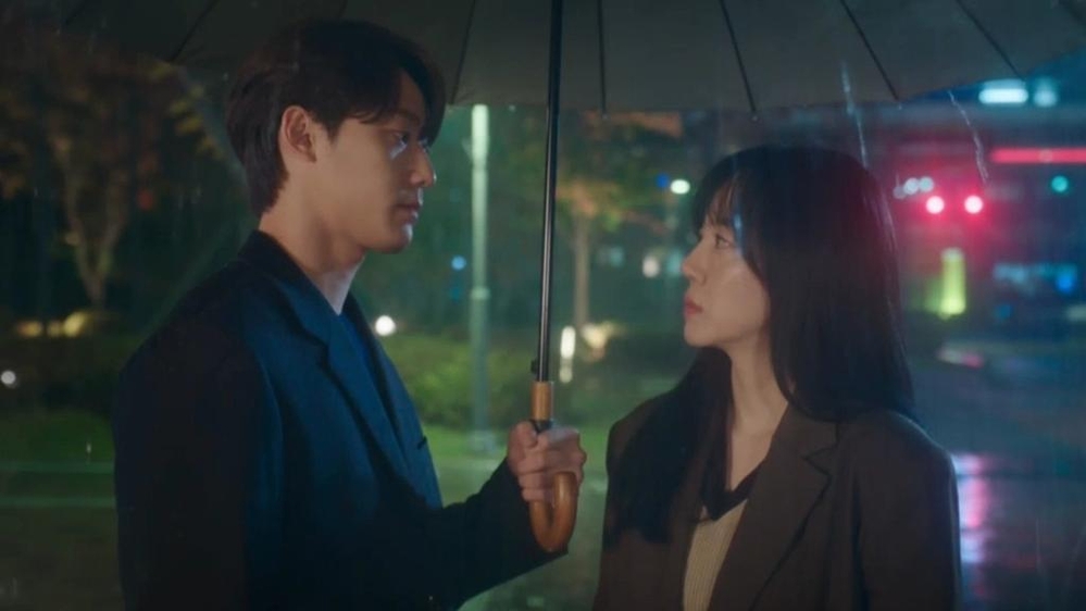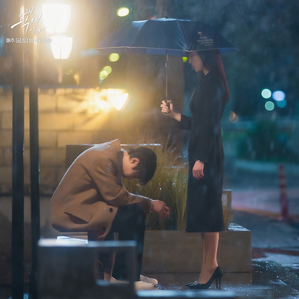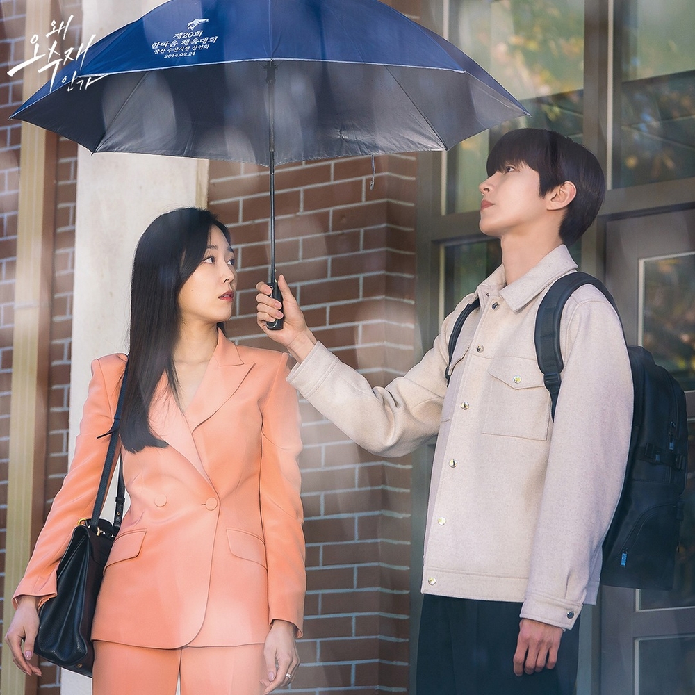 Xuất hiện thần tốc với chiếc ô trên tay, ra vẻ lạnh lùng nhưng đầy quan tâm che cho giáo sư Oh Soo Jae (Seo Hyun Jin) đang mắc mưa chính là chiêu lấy lòng xuất sắc của chàng sinh viên Gong Chan (Hwang In Yeop) trong Why Her? đấy. Nhìn xem, cô nàng giáo sư của chúng ta đã bất ngờ và cảm động là đủ thấy chàng trai trẻ kia đại thành công rồi. Chính những quan tâm nho nhỏ nhưng ấm áp của Gong Chan đã khiến cho Oh Soo Jae dù tỏ ra lạnh lùng bao nhiêu cũng nhanh chóng xiêu lòng. Thế là chúng ta có ngay cặp đôi trường luật đầy lãng mạn này.