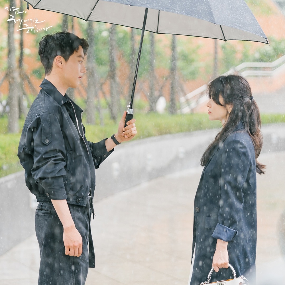 Chị đẹp Ha Young Eun (Song Hye Kyo) của Now We Are Breaking Up đang trong lúc bối rối với cảm xúc của mình thì lại gặp ngay đối tượng trong cơn mưa, đó chính là chàng nhiếp ảnh gia Yoon Jae Guk (Jang Ki Yong). Và chàng trai ấy lại còn xuất hiện ngời ngời cùng chiếc ô và ánh mắt dịu dàng khiến ai cũng tan chảy. Tôi mà là chị đẹp này thì chắc tôi sẽ đổ ngay anh trai đấy chứ không cứng rắn mà từ chối được đâu.