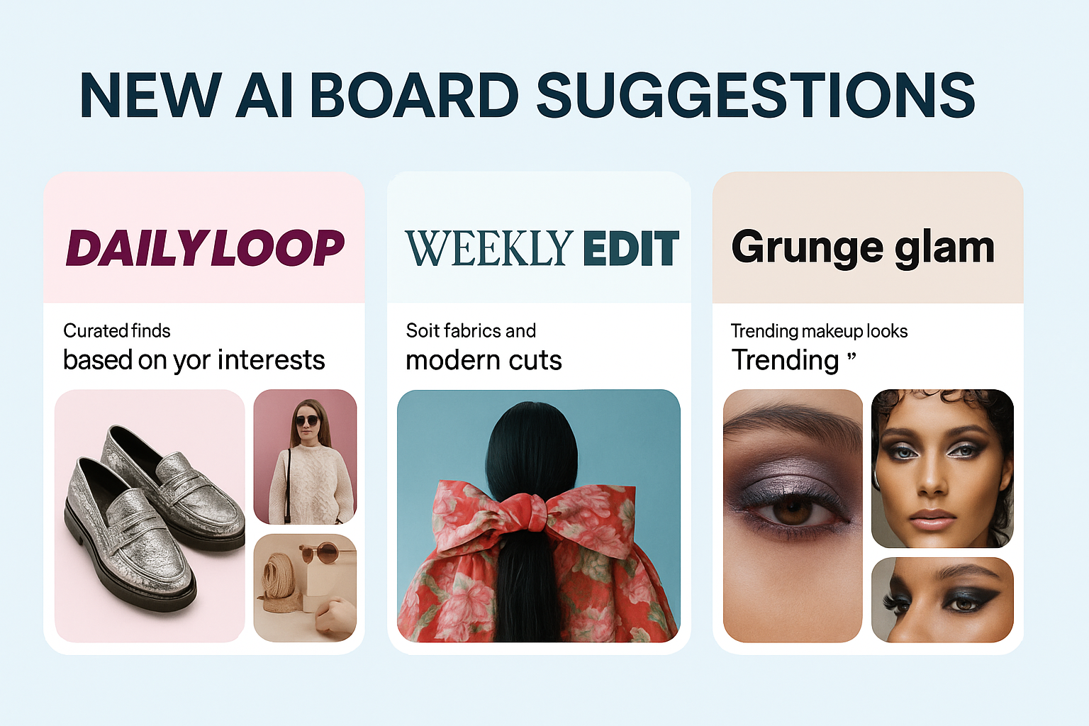 Song song đó, Boards Made for You mang đến trải nghiệm khám phá nội dung sâu hơn. Tính năng này tổng hợp các chủ đề gợi ý như xu hướng thời trang hàng tuần, ý tưởng trang trí nhà cửa, hay sản phẩm có thể mua trực tiếp. Những bảng gợi ý này sẽ hiển thị ngay trên trang chủ hoặc hộp thư của từng người dùng, giúp họ dễ dàng tiếp cận nội dung phù hợp gu thẩm mỹ.