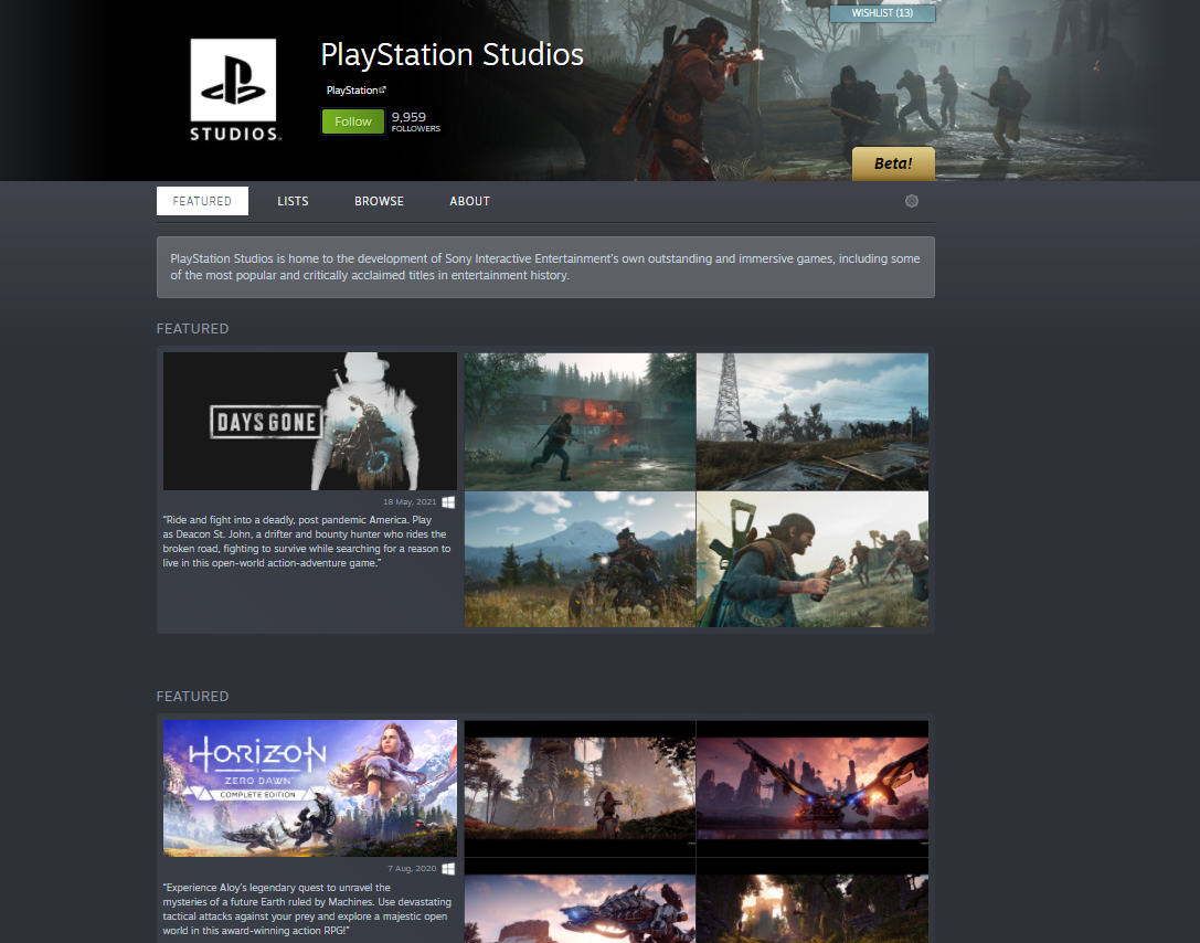Dường như Sony đã nhượng quyền của Steam để họ có thể dễ dàng mang những tựa game của mình lên nền tảng phân phối game lớn này. Một vài tựa game như Horizon Zero Dawn, Days Gone, Predator Hunting Grounds giờ đã được gộp chung vào một mục PlayStation Studio – điều này đồng nghĩa với việc, trong tương lai sẽ có rất nhiều tựa game độc quyền trên PlayStation sẽ xuất hiện trên PC. Tuy nhiên, đây chỉ là bước đầu tiên mà thôi, mặc dù ở thời điểm hiện tại Sony vẫn chưa xác nhận gì thêm về những tựa game tiếp theo sẽ xuất hiện trên PlayStation.