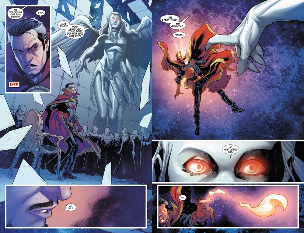 Tuy nhiên, Strange cũng không giàu có đến mức có thể trao đổi mãi được. Dùng mãi cũng hết, Strange phải tính đến việc trao đổi pháp bảo (rồi sau này sẽ tìm cách “thó” lại sau), nhưng càng làm thế thì điều này càng có hại. Một khi năng lượng phép thuật trong vũ trụ có vấn đề, Strange sẽ càng phải mượn nhiều hơn, rồi lượng pháp bảo cũng hết dần và không thể trả giá xứng đáng được, dẫn đến việc không thể dùng phép lẫn pháp bảo nữa.