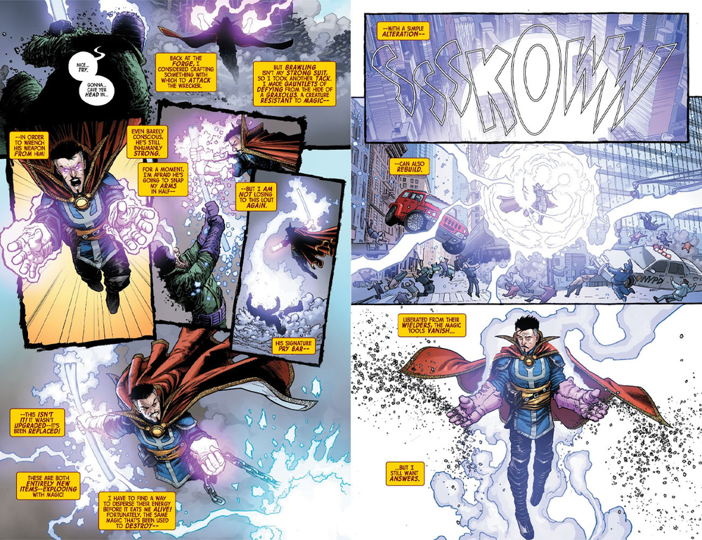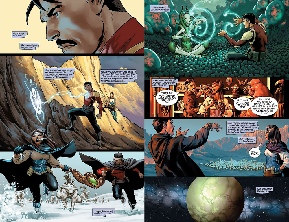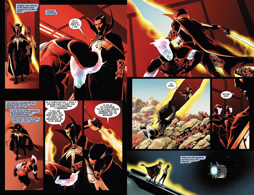 Do đó, để khắc phục tình trạng này thì Strange đành đến mượn tàu du hành vũ trụ của Tony Stark nhằm tìm kiếm nguồn phép thuật mới, đang được ẩn giấu trong những vì sao. Trong hành trình khám phá, Strange gặp gỡ Kanna – một nhà khảo cổ học tài giỏi, cùng Eoffren – một thợ rèn phép thuật thuộc tộc người lùn của Nidavellir. Khi này, vì quá nổi danh, Eoffren đã bị Roxnor, pháp sư Majesdanian bắt cóc để chế tạo vũ khí hủy diệt thế giới.