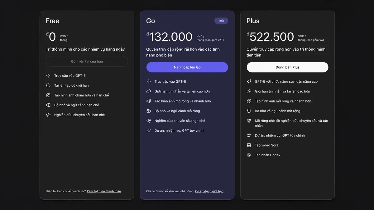 So sánh ChatGPT Go, ChatGPT Miễn Phí và ChatGPT Plus