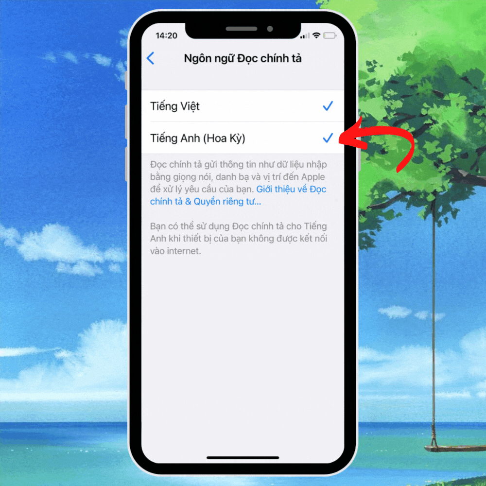 Bước 5: Ở cửa sổ Ngôn ngữ Đọc chính tả, bạn có thể sử dụng 2 ngôn ngữ là Tiếng Việt hoặc Tiếng Anh (Hoa Kỳ) hoặc bạn có thể chọn sử dụng ngôn ngữ chính là Tiếng Việt bằng cách nhấn vào ngôn ngữ Tiếng Anh để bỏ chọn sử dụng ngôn ngữ này.