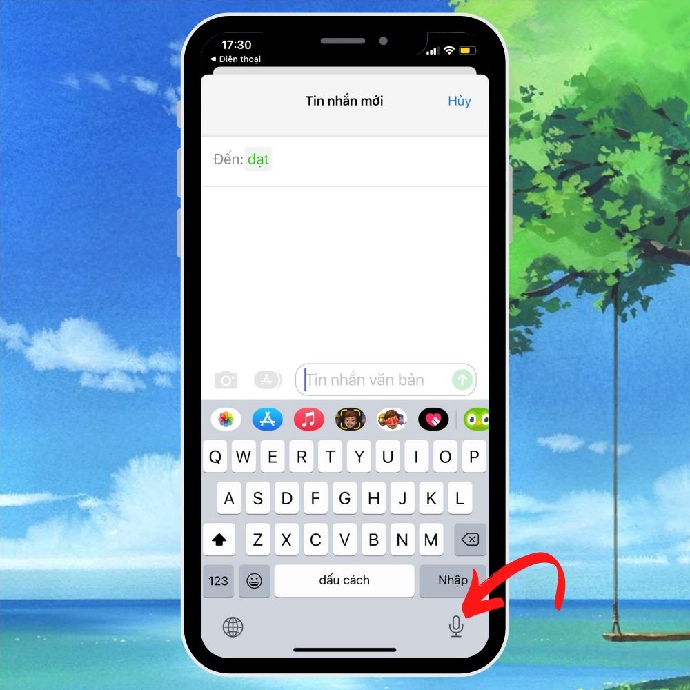 Bước 1: Bạn nhấn vào biểu tượng ghi âm ở góc phải cuối bàn phím.