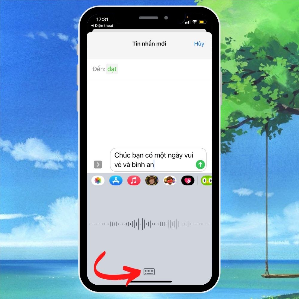 Bước 2: Tiếp theo, bạn tiến hành ghi âm lại lời nói, thiết bị sẽ tự động chuyển các thông tin trong lời nói của bạn thành văn bản. Cuối cùng, bạn nhấn vào biểu tượng bàn phím để kết thúc đoạn ghi âm hoặc im lặng khoảng 5 giây trình ghi sẽ tự tắt và thoát trở lại bàn phím ảo.