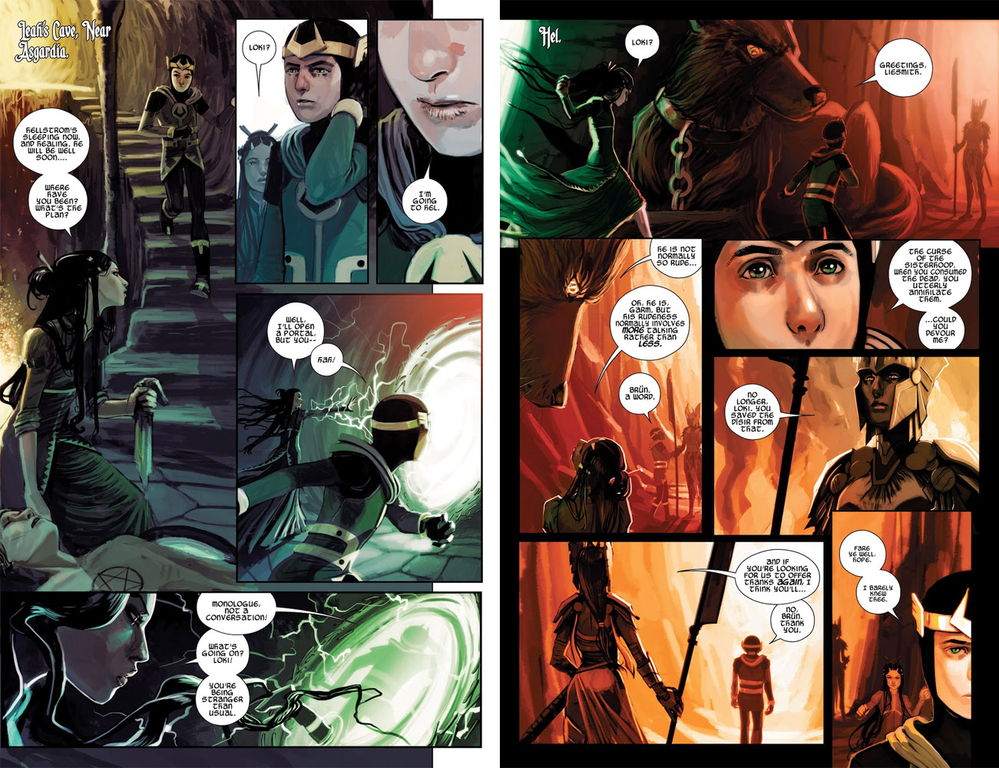Trong truyện, Hela vốn không phải chị gái của Thor, mà chỉ có dính dáng tới Loki thôi. Về phả hệ thì giống như thần thoại, Hela là con gái của Loki, nhưng điều này là mập mờ vì Asgard đã trải qua quá nhiều vòng lặp Ragnarok, thậm chí Loki còn chẳng thể nhớ Hela được sinh ra như thế nào. Theo những chi tiết cũ thì Hela được cho là con gái của Odin với một vị nữ thần cổ xưa bị lãng quên, nhưng giờ thì điều đó không còn đúng nữa.