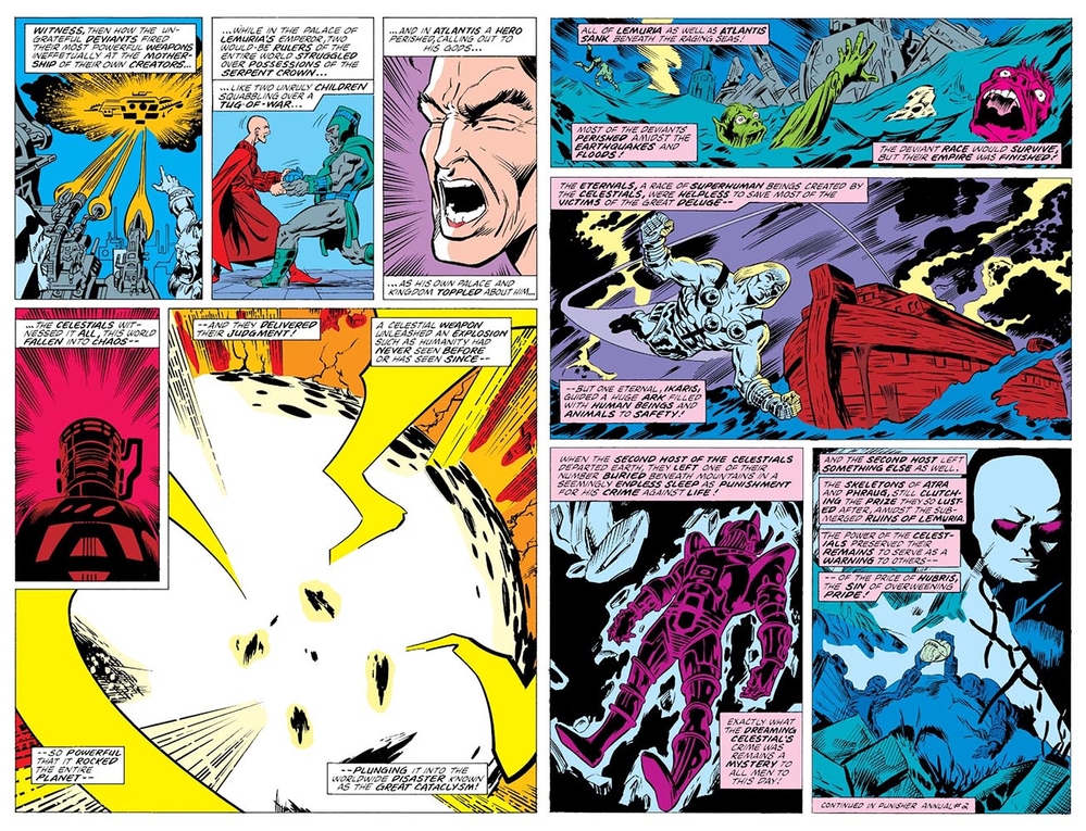 Do đó, vua Kamuu đã mở các hố magma, dùng dung nham nóng chảy tiêu diệt quân Deviant. Nhưng do áp suất núi lửa quá khủng khiếp, núi lửa phun trào cùng động đất đã khiến toàn bộ lục địa Atlantis bị tàn phá. Trong lúc đó, quân Deviant còn phát động tấn công vào những Celestial. Kết quả là Arishem đưa ra phán quyết, đánh chìm toàn bộ lục địa Lemuria xuống đáy biển.