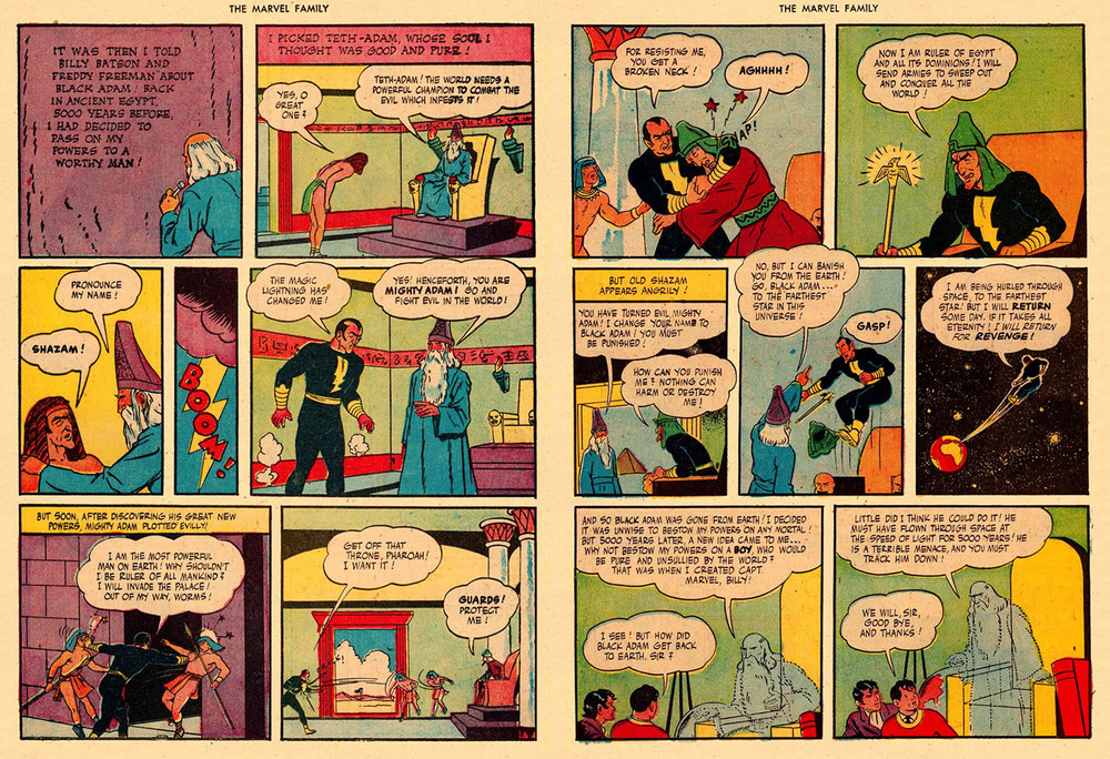 Lần đầu tiên hắn bị lừa một vố như vậy là từ thời khi bản quyền của “Captain Marvel” còn ở Fawcett Comics, tức là thời kỳ đầu trước cả khi DC có bản quyền nhân vật này. Cụ thể thì khi hắn trở về Trái Đất sau 5000 năm trôi nổi ngoài vũ trụ, cả nhóm Billy không thể đối phó nổi với hắn, cho đến khi Uncle Marvel đi hỏi ý kiến của phù thủy Shazam. Thế là ông liền giả ngốc, vờ cố tình nói sai tên lão phù thủy, khiến Adam tự mãn và tự mình nói ra cái tên đó.