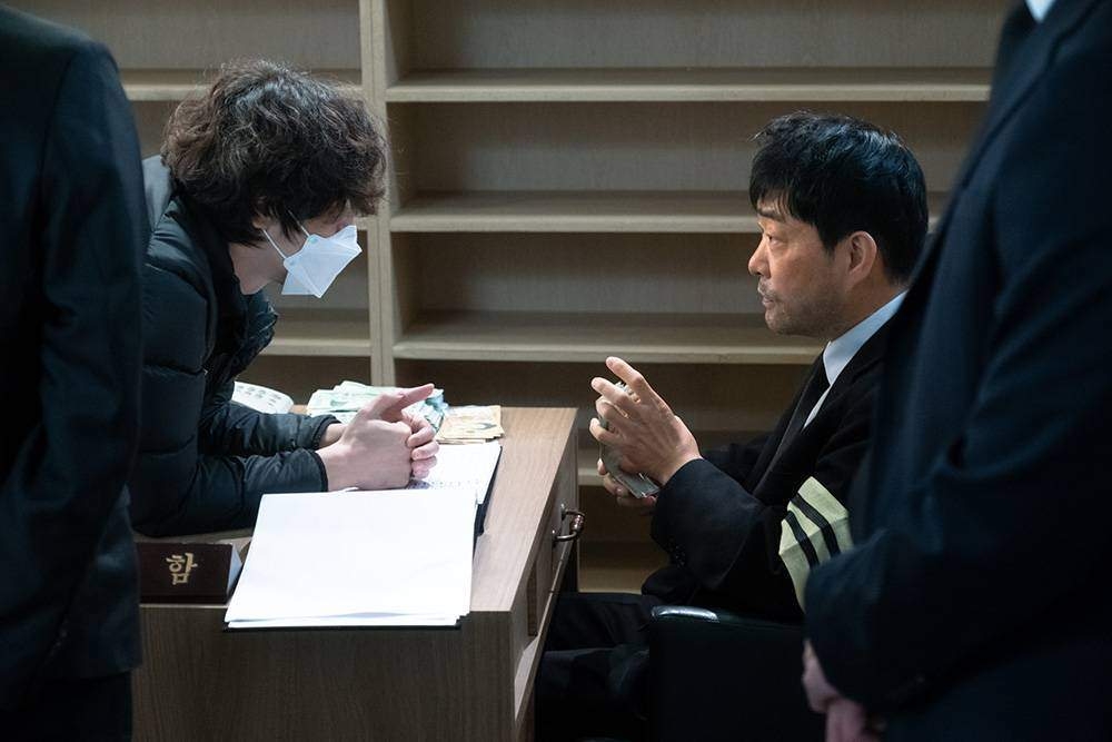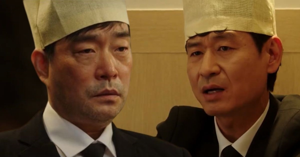 Cảnh thứ hai đó là đoạn hai cha con Ho Sung cùng ngồi đếm tiền phúng điếu. Đây là phân đoạn mình thấy khá chân thật, có thể là cách đạo diễn phê phán thói hư tật xấu của một số gia đình có thói quen lợi dụng tiền của khách viếng để làm điều có lợi cho bản thân. Càng hay hơn nữa là Ho Sung có thái độ chỉ trích những bao thư mỏng, vài đồng lẻ và ông lại tỏ vẻ trân quý những ai đi bao thư dày chừng cả xấp tiền.